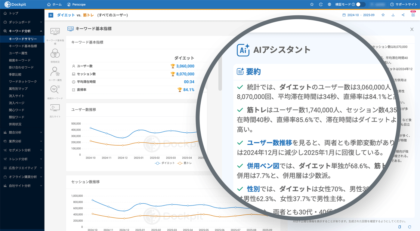 自社サイトから競合・業界の把握までDockpitだけでシームレスに分析
