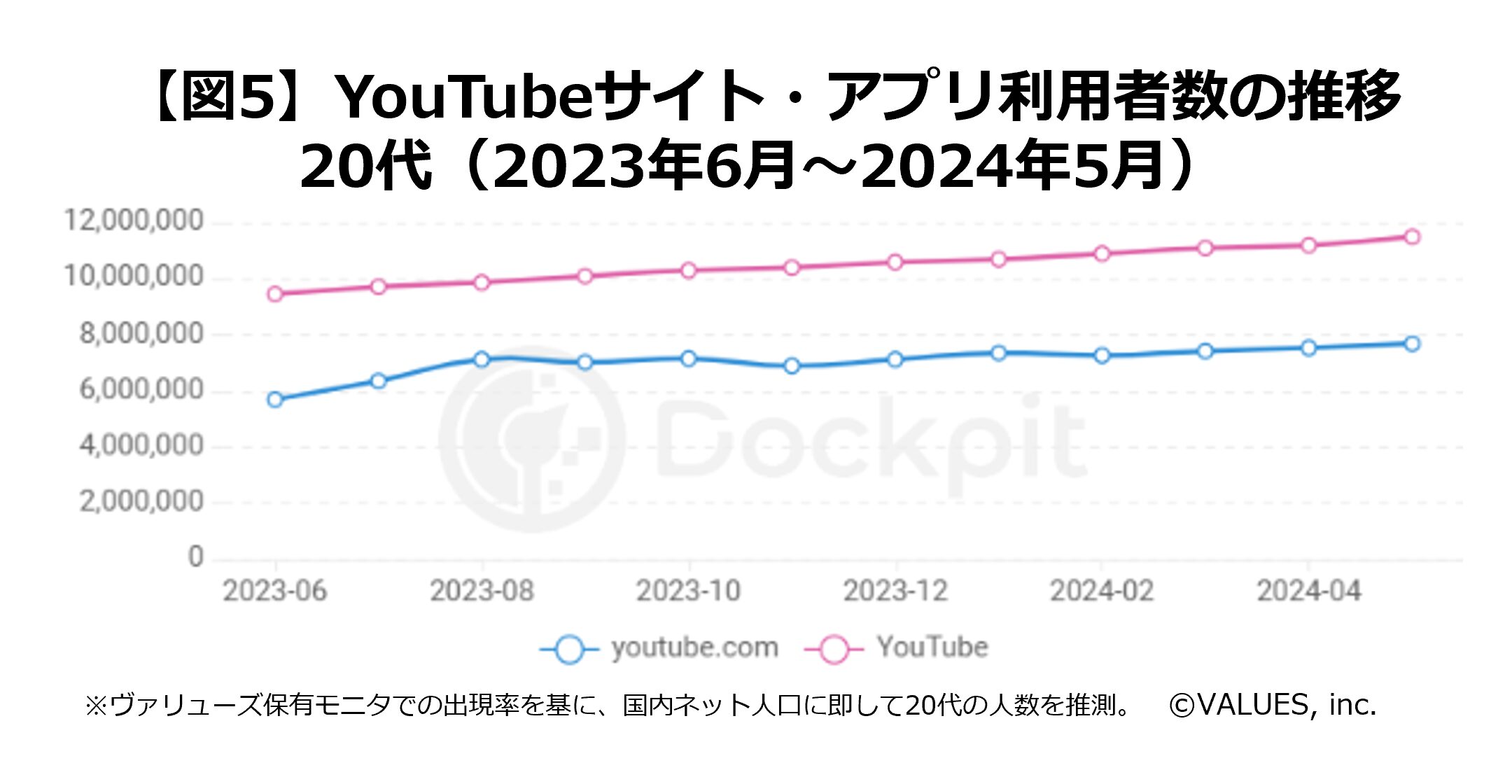 ・PC及びスマートフォンからのアクセスを集計し、ヴァリューズ保有モニターでの出現率を基に、国内ネット人口に則して推測。