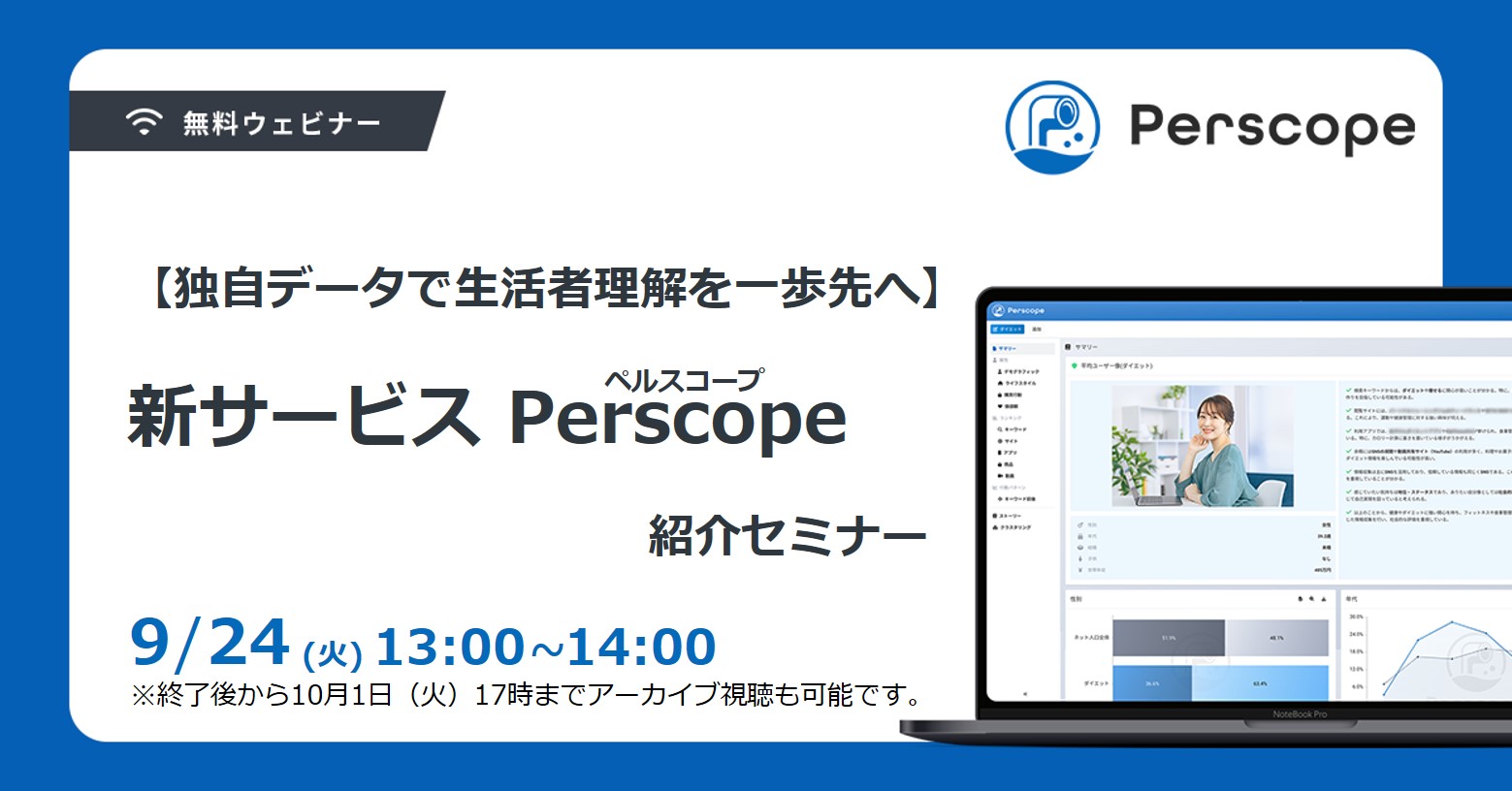 そんな皆さまのお悩みに応えるべく、この度新サービスとして開発いたしました、生活者理解を一歩先へ導くリサーチエンジンPerscope(ペルスコープ)を通してお力添えができるかと存じます。