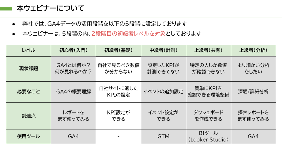 - データを見ているだけになっており、GA4を活用して成果を得たい方