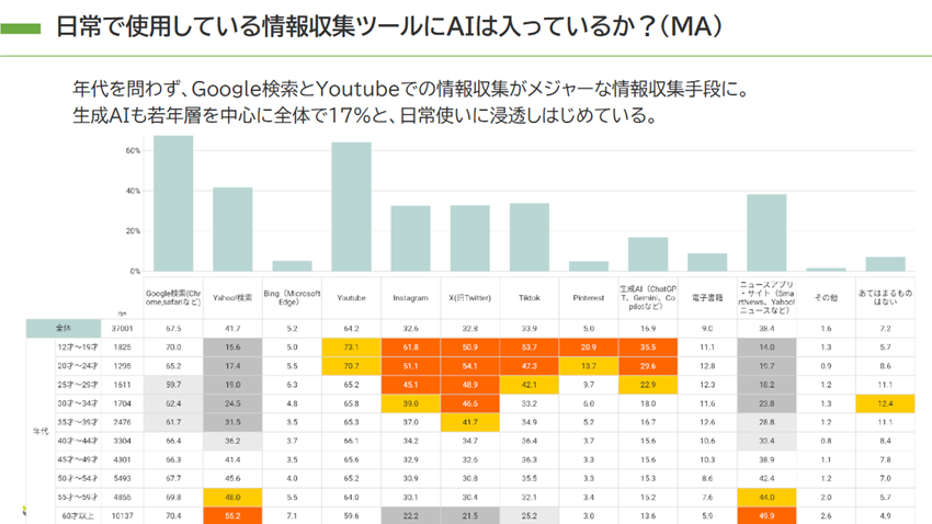今回の調査からは、AIがすでに消費者の日常的な情報源には入り込んでいること、購買行動への影響は現時点では限られていることが判明しました。