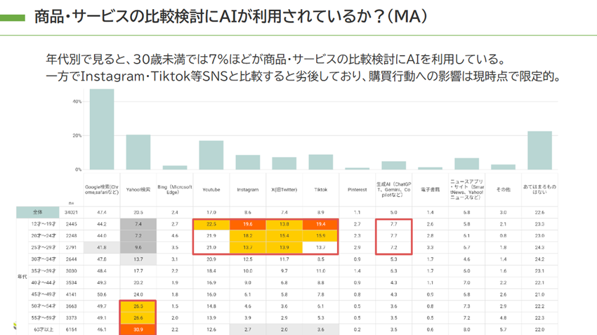 生成AIの発達により、マーケティング業務での活用ももちろんですが、消費者が情報収集や購買行動にAIを使うケースも増えています。