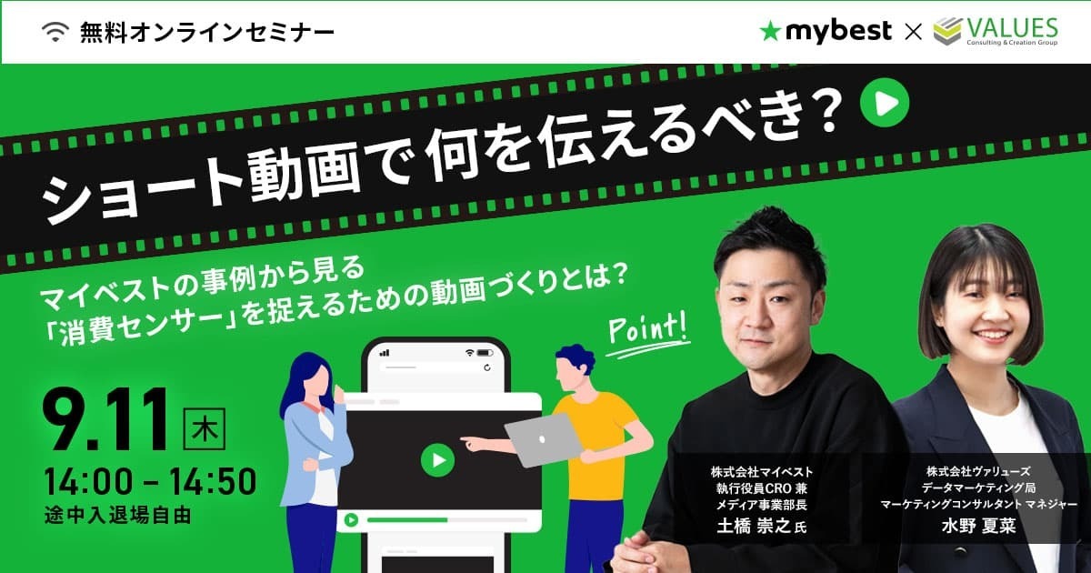 2025年06月03日(火) 申込受付終了ウェビナー無料 消費者は比較サイトを参考にしている? 比較検討プロセス理解の重要性をマイベスト&ヴァリューズで徹底解説|好評につき再配信 Web行動ログ×アンケート共催