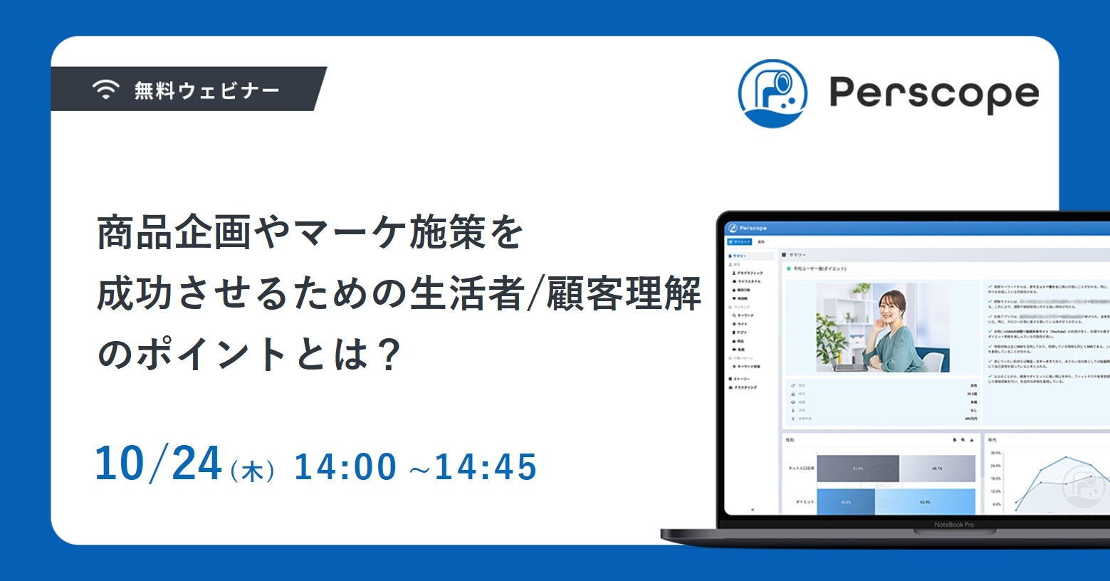 2024年09月11日(水) 申込受付終了ウェビナー無料 新サービスお披露目!生活者理解を一歩先へ導くリサーチエンジン Perscope(ペルスコープ)紹介ウェビナー ※アーカイブ視聴も可 Perscope