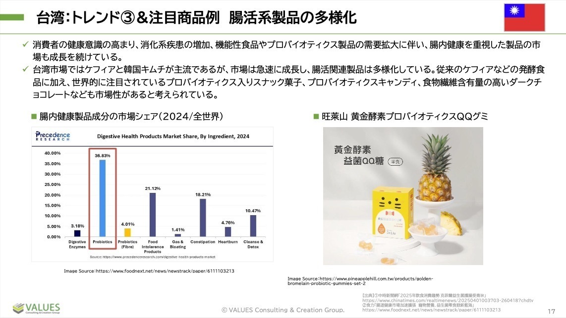 台湾市場ではケフィアと韓国キムチが主流ですが、市場は急速に成長し、腸活関連製品は多様化しています。