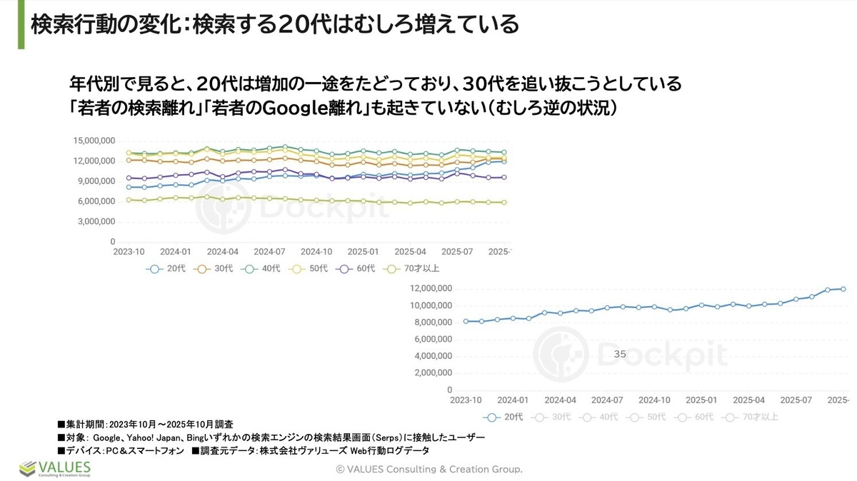 検索行動の変化:検索する20代はむしろ増えている