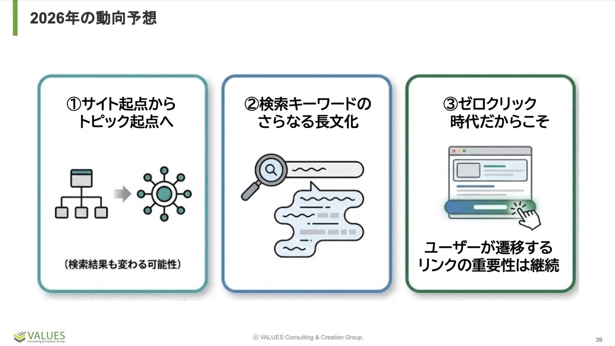 2026年のコンテンツマーケティング・SEO動向予想として、3つの提示。