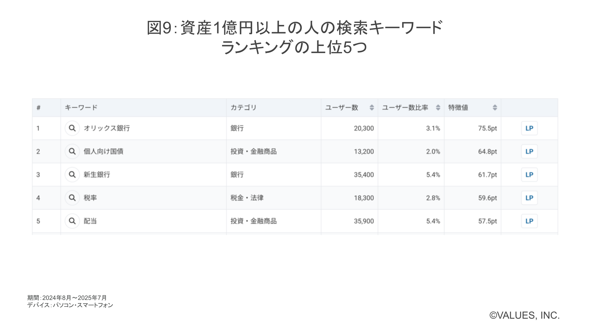 資産1億円以上を保有する富裕層は、どのような投資先に関心を持っているのでしょうか。検索キーワードの特徴値(※)を分析すると、上位に「個人向け国債」がランクインしています。背景にあるのは、2025年10月時点で利率1%を超えた金利上昇です。直近数年間の低金利時代から一転、魅力的な利率となったことで注目が急上昇しました 。