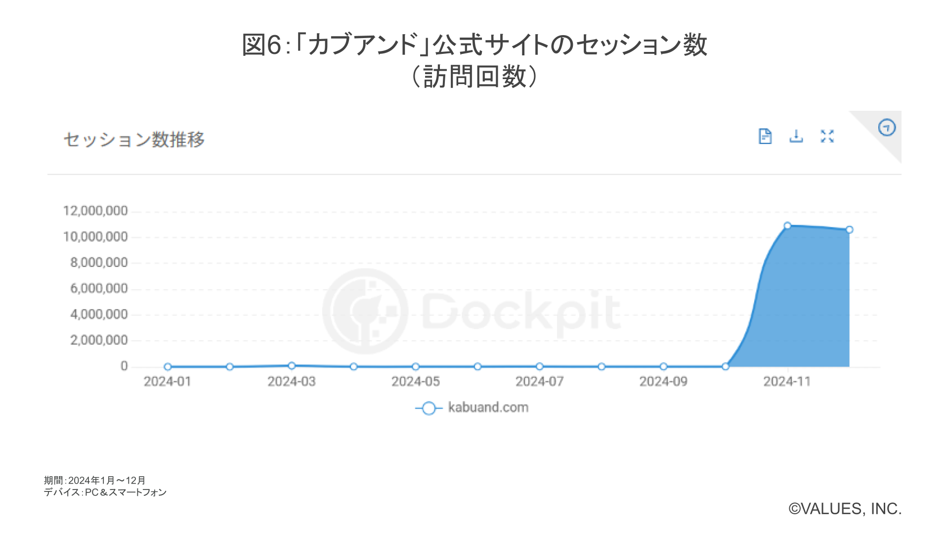 公式サイトの閲覧者データを見ると、サービス開始月である2024年11月のユーザー数は451万人、セッション数(訪問回数)は1,090万回に達しており、初月から驚異的な注目を集めていることがわかります 。
