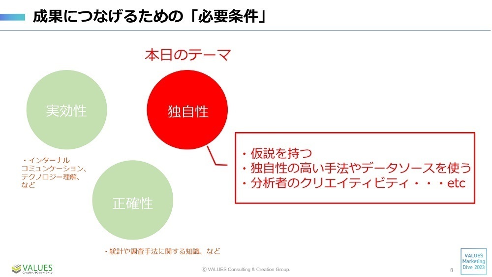 間宮:リサーチ結果を成果に繋げるためには「実効性」「正確性」「独自性」の3つの条件があると考えています。