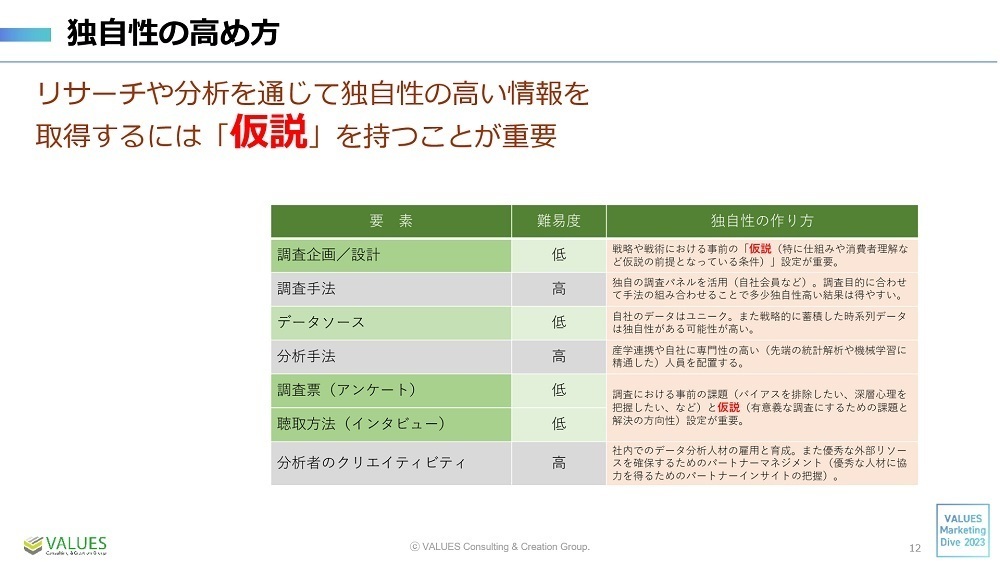ユニークな「仮説」を持って分析を行い独自性の高いアウトプットを得る