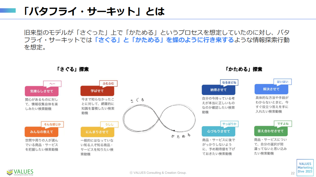 岩間:後半では、マーケターとしてSEO対策を今後どう考えていけばいいのかについて議論していきます。そこで、補助線として、バタフライサーキットという考え方をご紹介します。