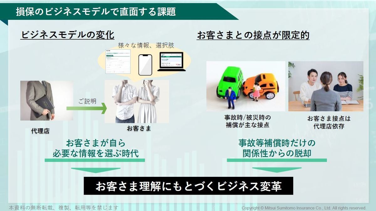 また今まではお客様との接点が、事故に遭われた時など限定的でした。それ以外の接点を作るため、お客様を深く理解してビジネスを変革することが我々に求められていることでした。