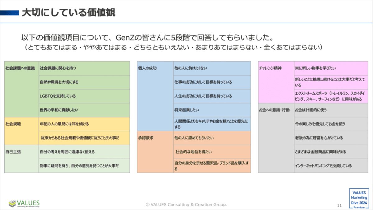 調査では、6カ国のGen Zに「社会課題への意識」「個人の成功」といった7つの項目について、5段階で答えてもらいました。