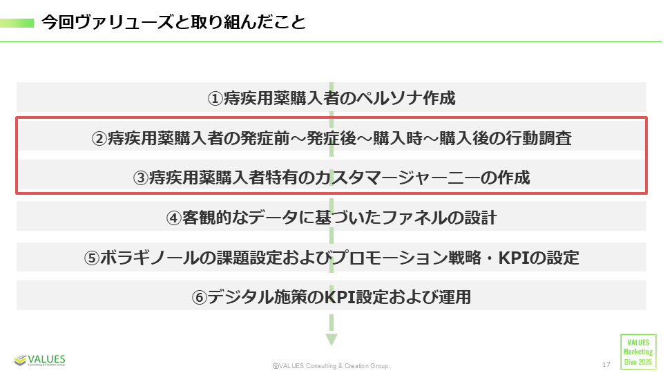 取り組みの起点であり、肝でもある「痔疾用薬購入者の行動調査」と「カスタマージャーニーの作成」について、小幡さんからお願いします。